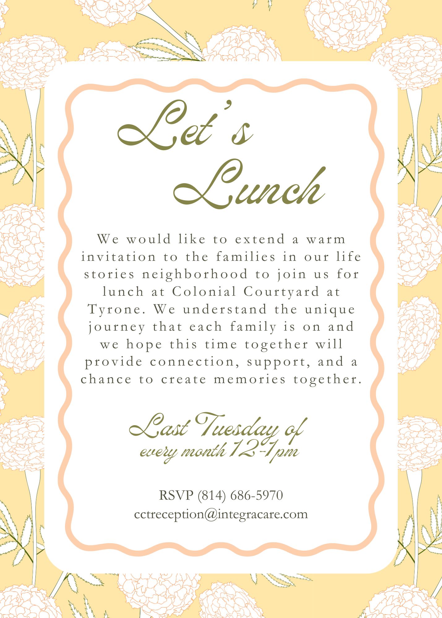 We believe the best way to get to know us is to experience our vibrant community firsthand. That’s why we warmly invite you to attend one of our upcoming events designed to showcase life at Colonial Courtyard at Tyrone.