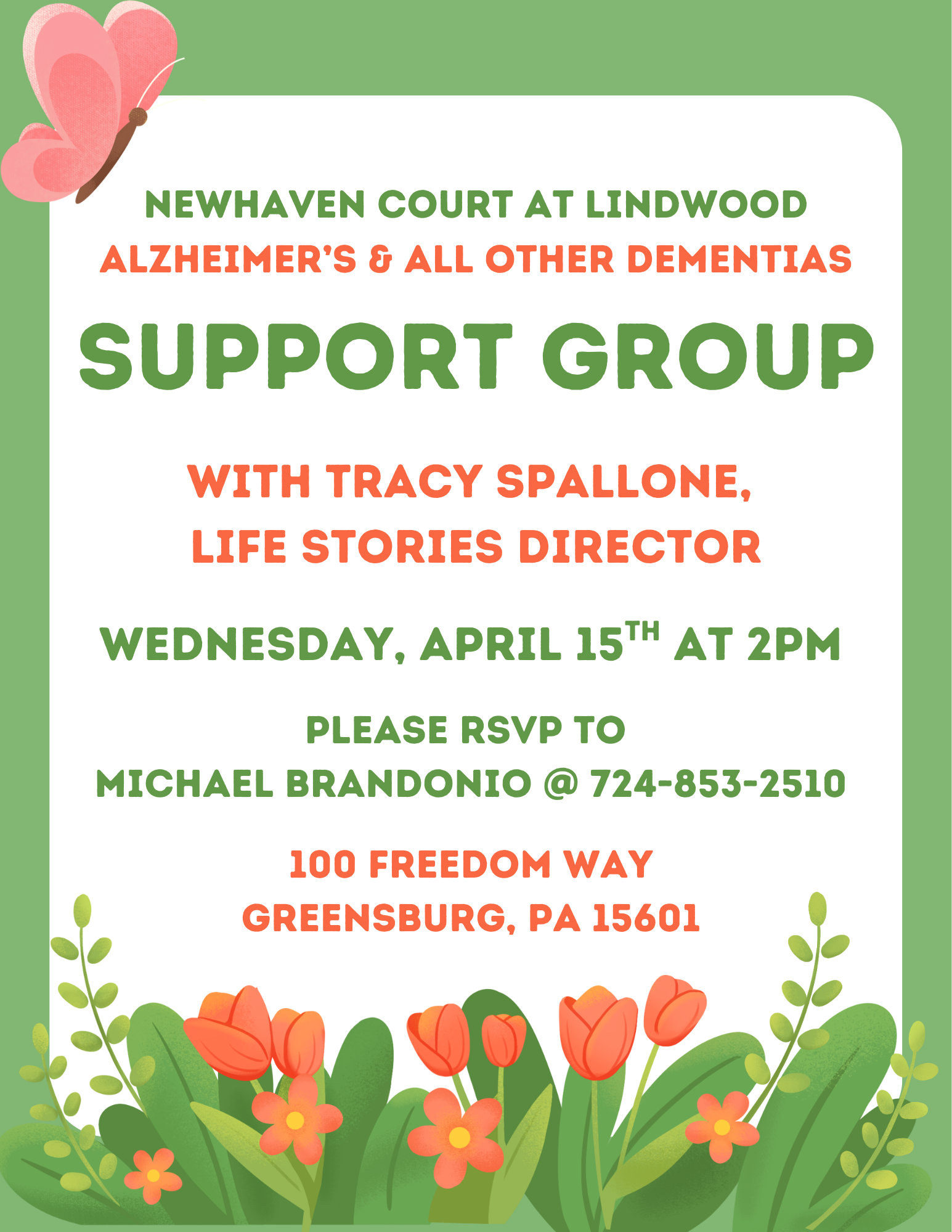 Please join our Life Stories Director, Tracy Spallone, for light refreshments and meaningful conversations. Whether you're a family member, friend, or care partner, this is a time to connect with others, share experiences, and gain helpful insight for the journey ahead.