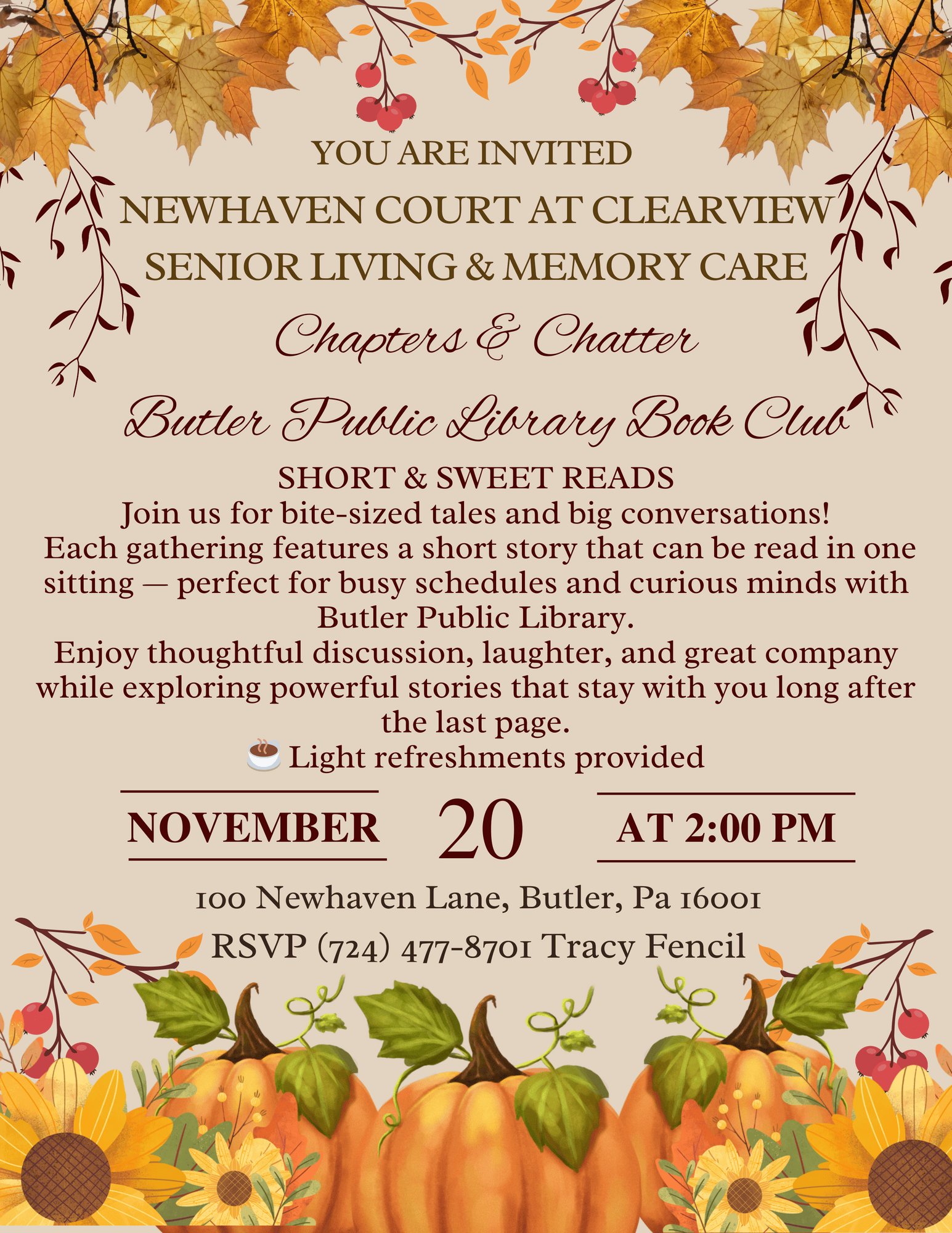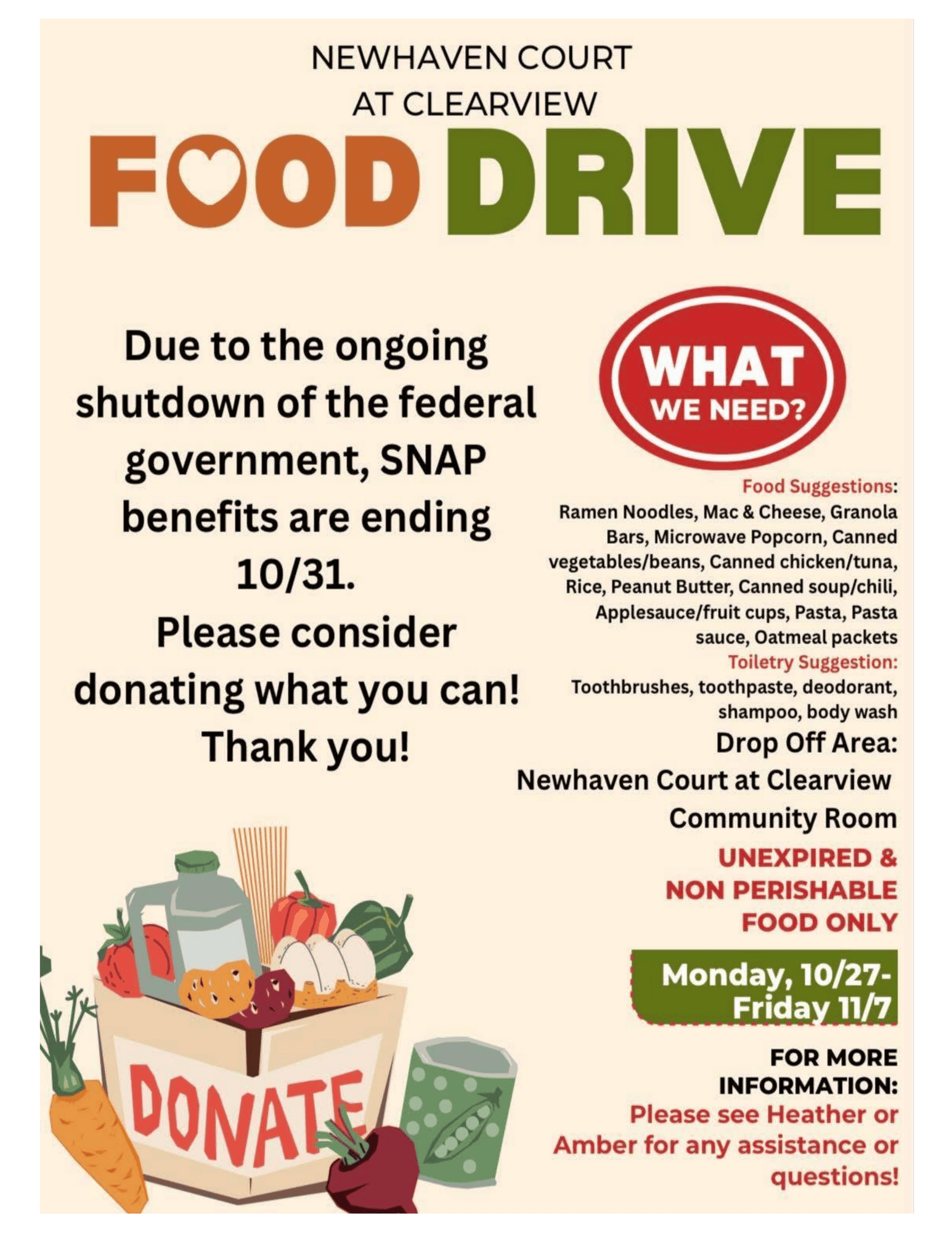 Please reach out to Tracy Fencil for donating baked goods Newhaven Court at Clearview -