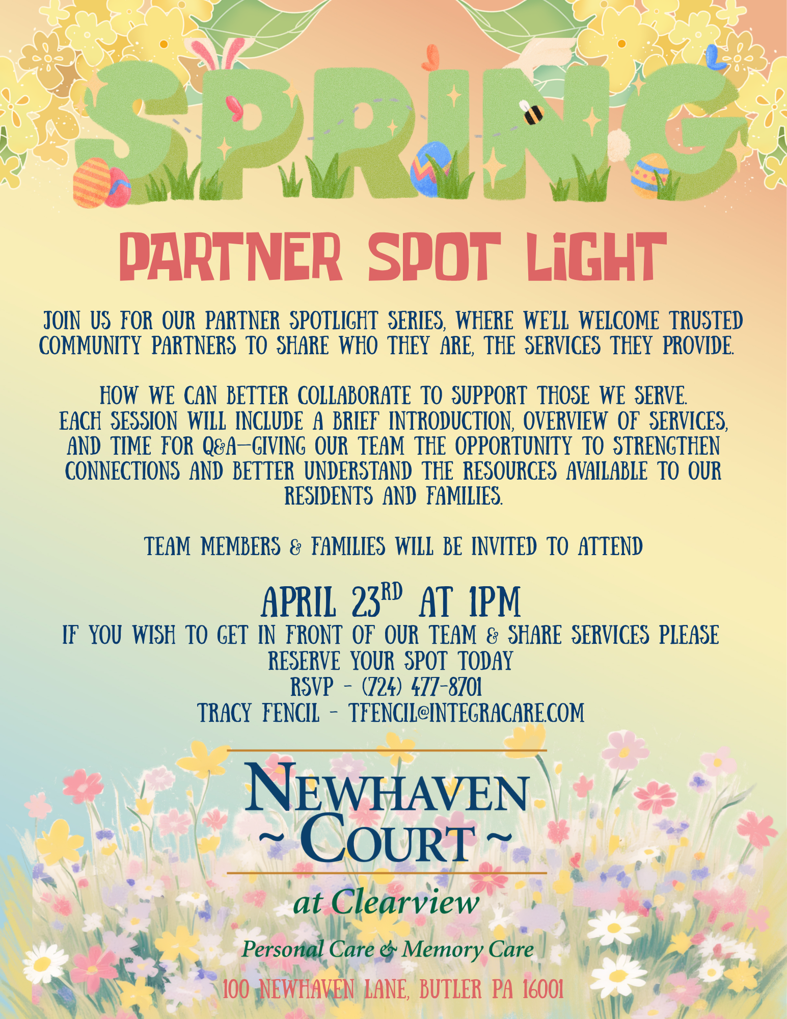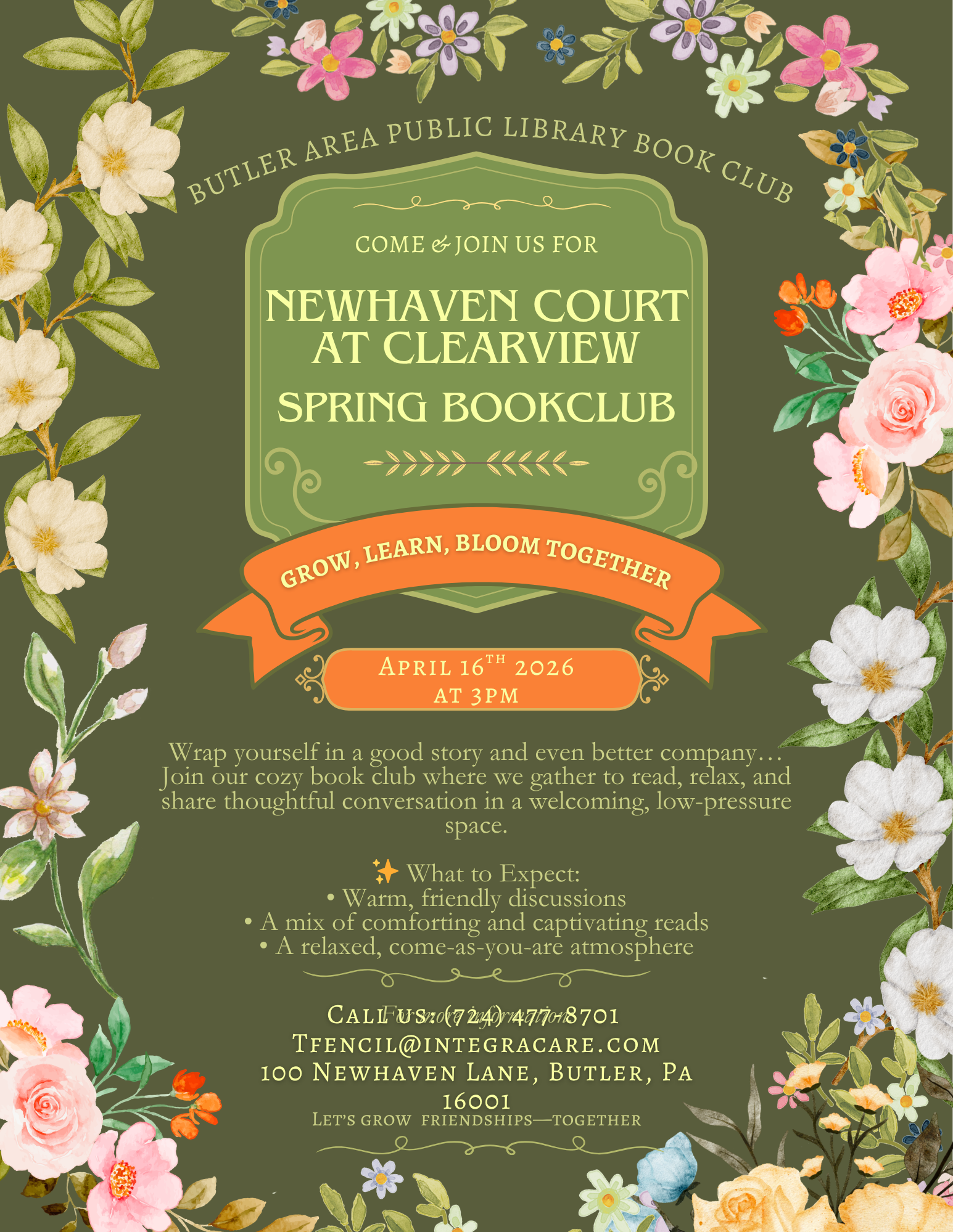 We invite you to Spring Into a Tour — a fresh and welcoming opportunity to visit, connect, and experience the warmth of our community firsthand. Meet our caring team, explore our beautiful spaces, and learn more about the vibrant lifestyle and personalized support we provide. As a special thank you, every guest who tours will take home a little spring cheer — a seasonal surprise to brighten your day!