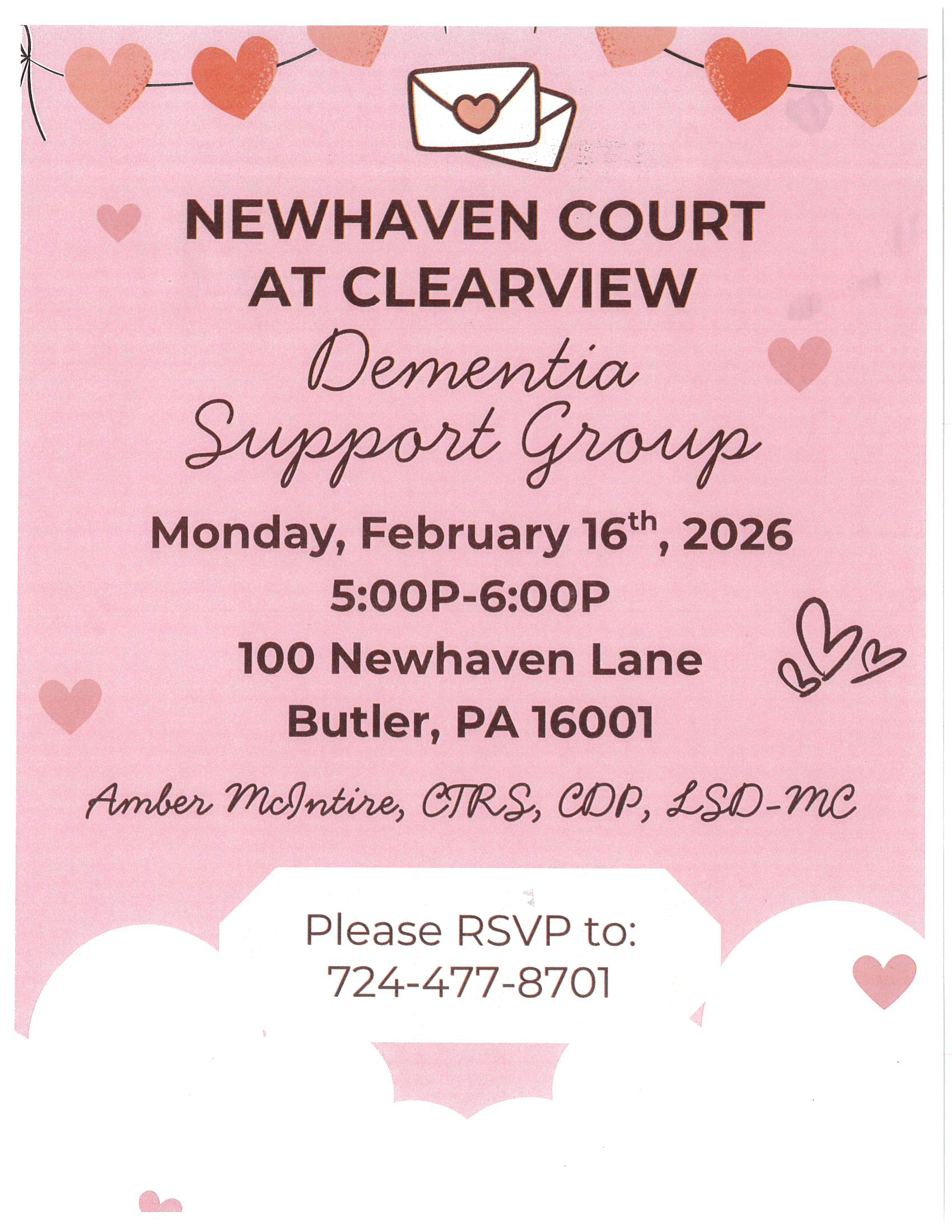 Fill out the form and reserve your spot for February Dementia Support Group