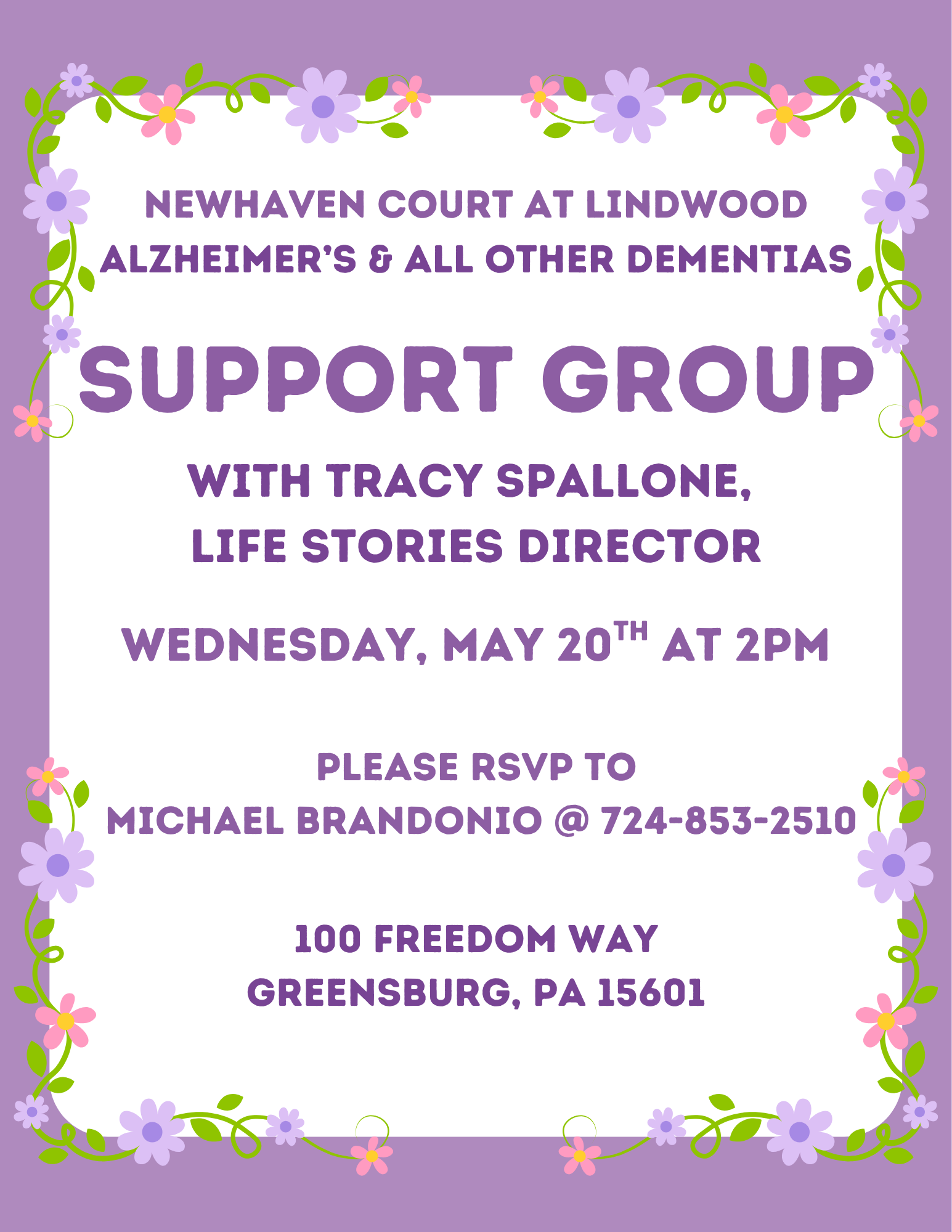 Please join our Life Stories Director, Tracy Spallone, for light refreshments and meaningful conversations. Whether you're a family member, friend, or care partner, this is a time to connect with others, share experiences, and gain helpful insight for the journey ahead.