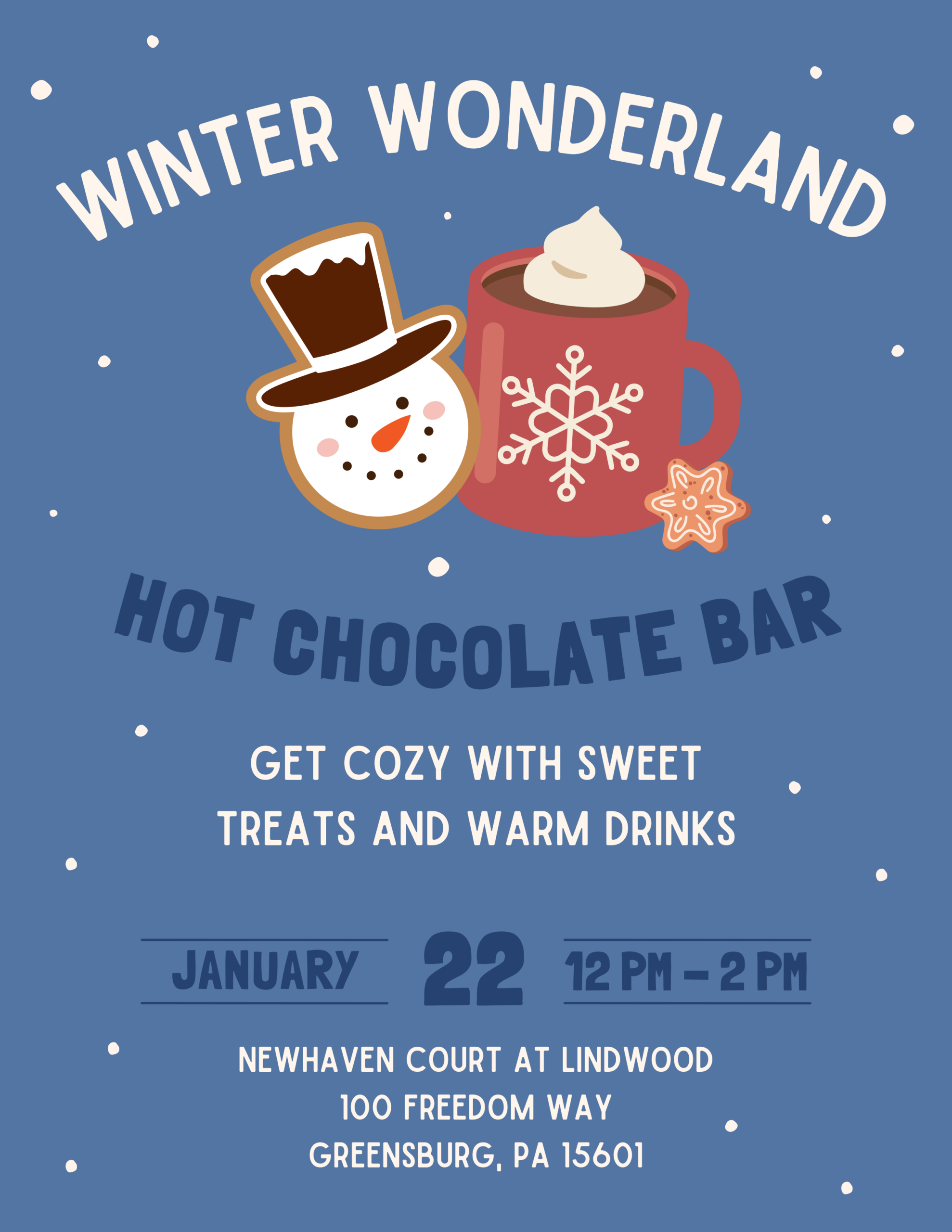 Join us for a cheerful afternoon filled with warm cocoa, sweet treats, and heartwarming conversation. All are welcome!
