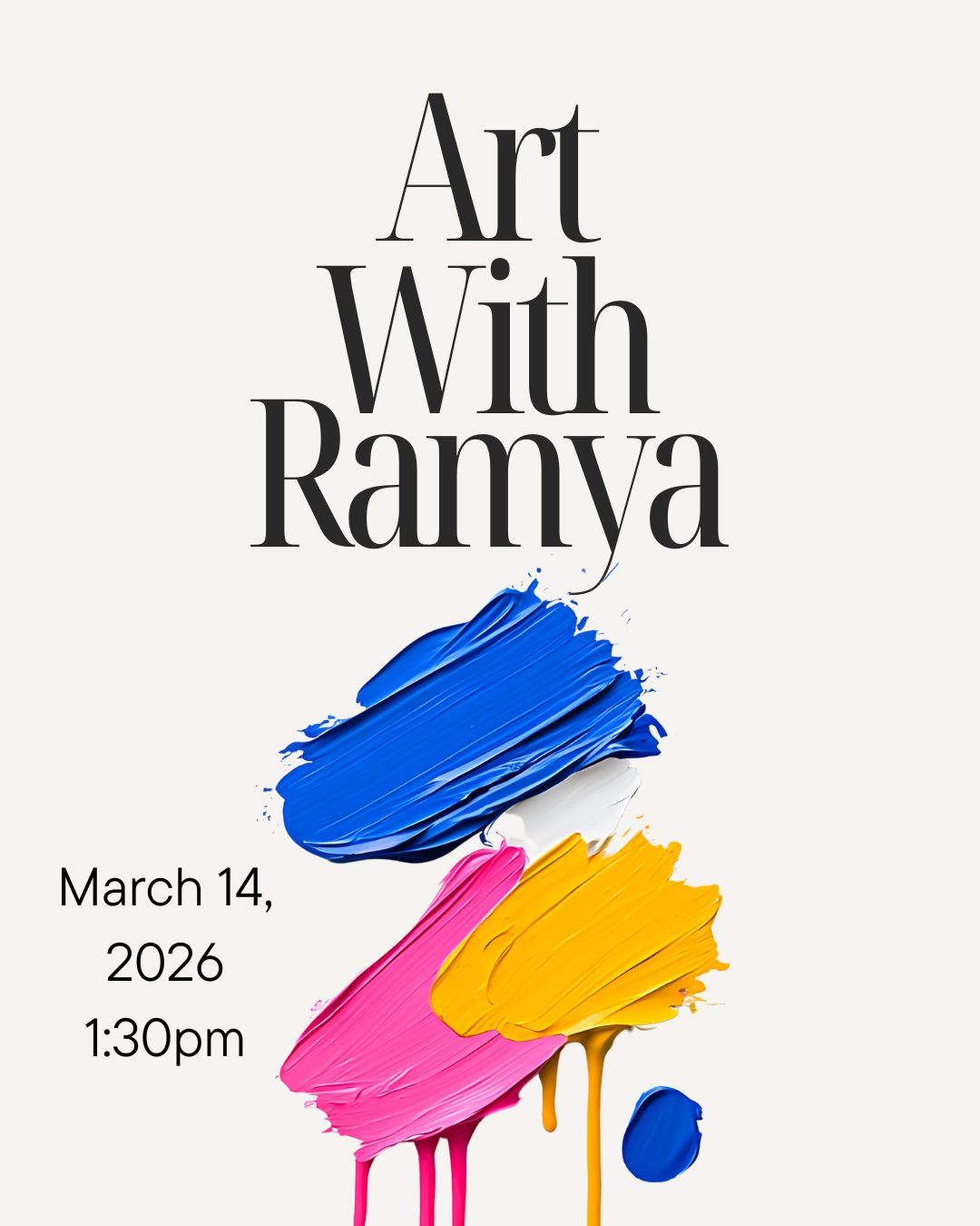 Fill out the form and reserve your spot for Art with Ramya