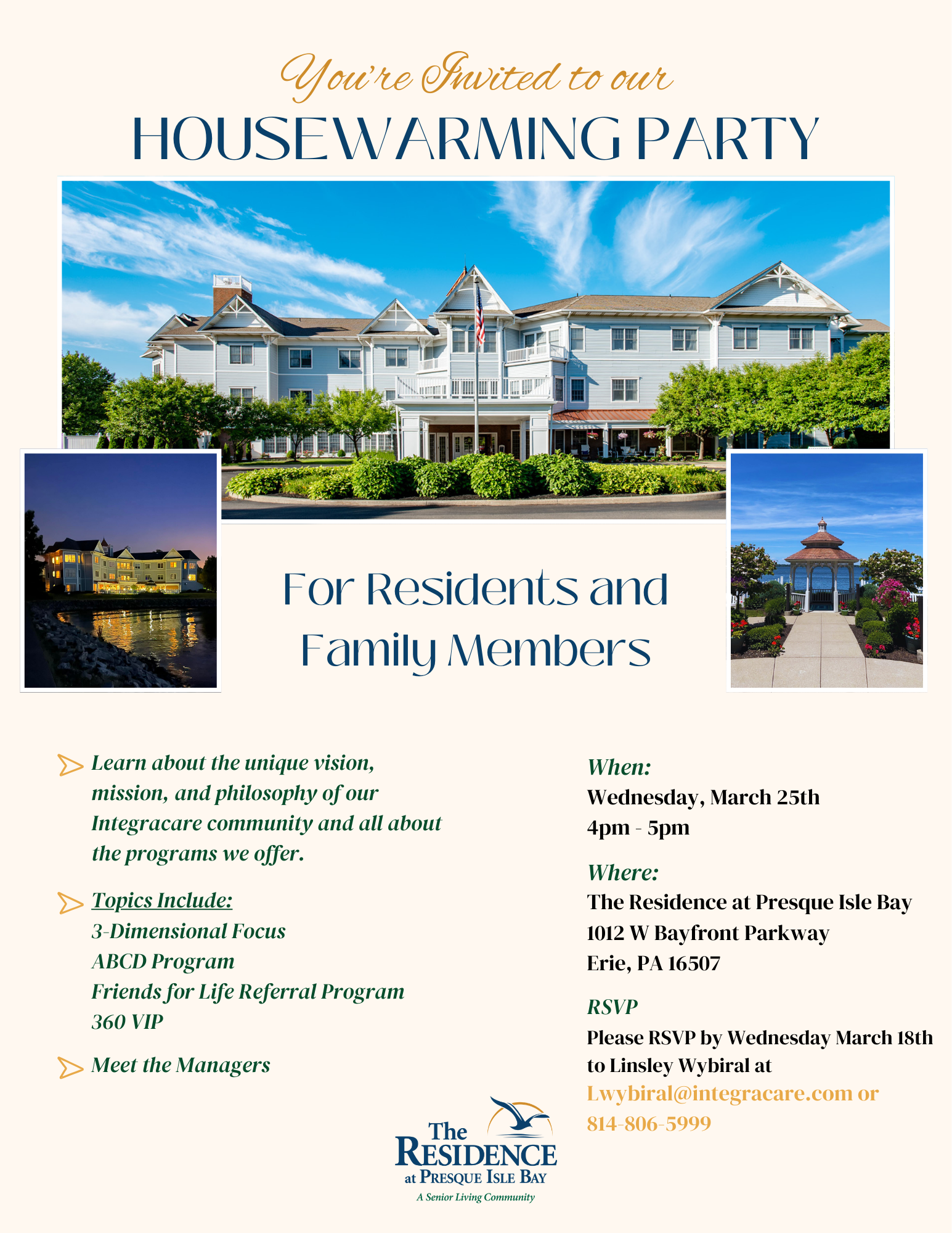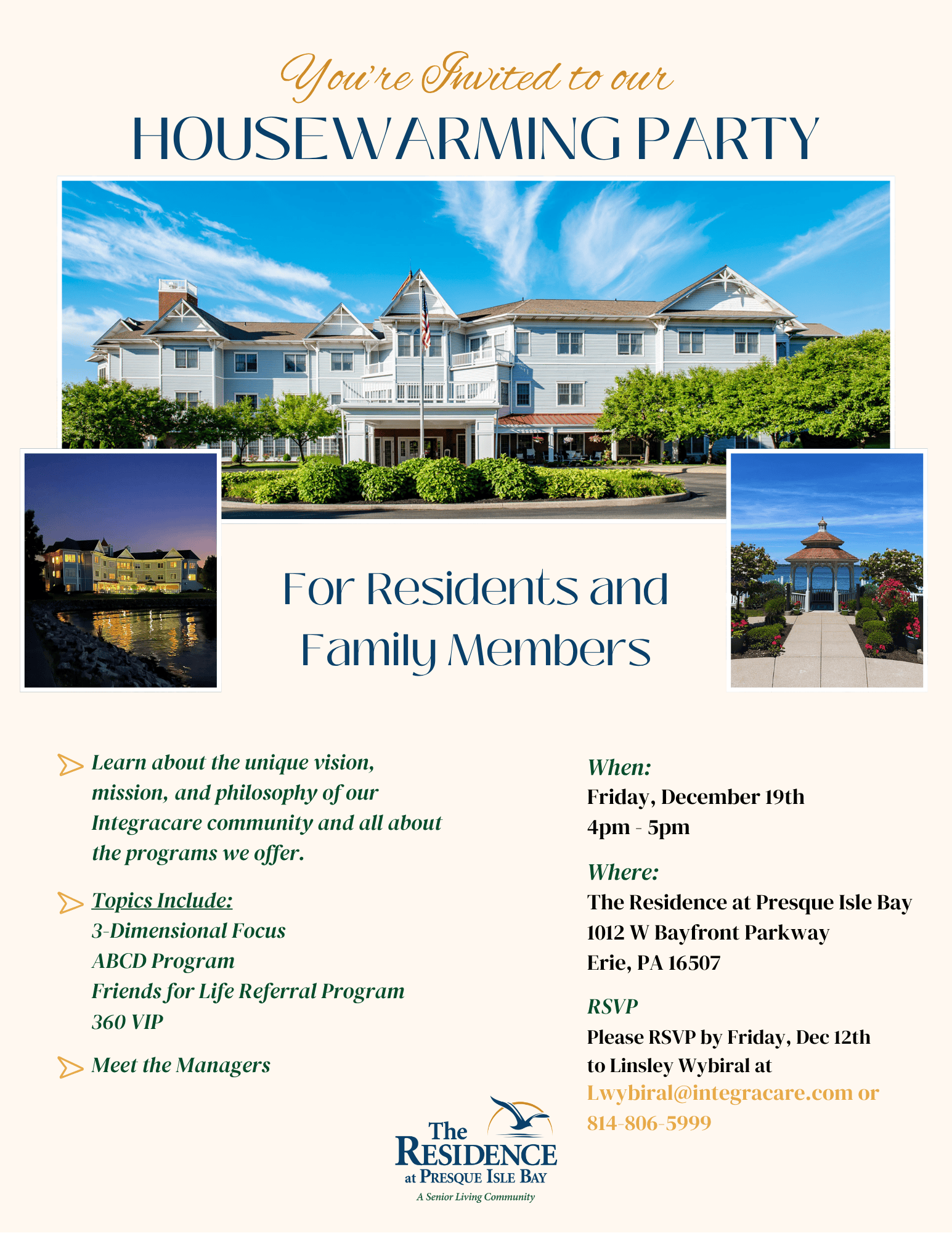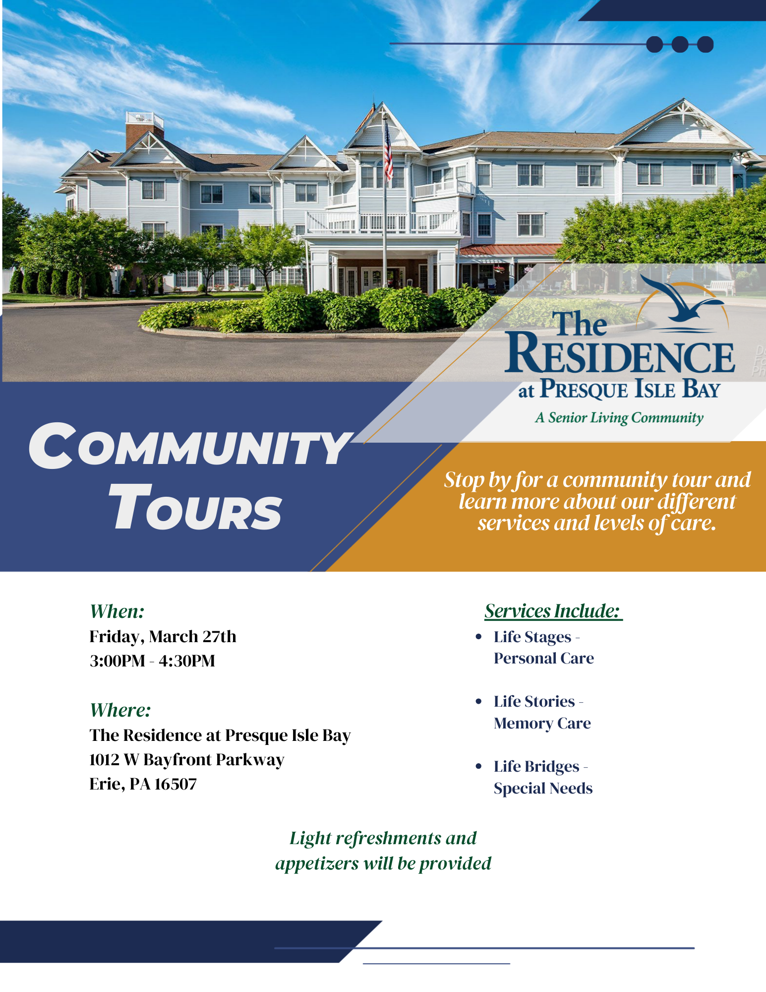 We believe the best way to get to know us is to experience our vibrant community firsthand. That’s why we warmly invite you to attend one of our upcoming events designed to showcase life at The Residence at Presque Isle Bay.
